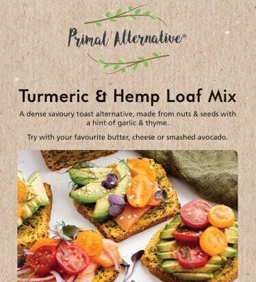 Ingredients: tapioca flour, almond meal, sunflower seeds, linseed, cashew nuts, walnuts, hemp seeds, turmeric, chia seeds, garlic, thyme, grain-free baking powder, sea salt, black pepper.