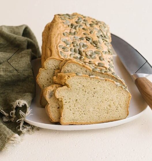 Made to order, a savoury alternative to bread, made from zucchini, nuts and eggs, topped with pumpkin seeds. Works well as a sandwich bread or toasted.